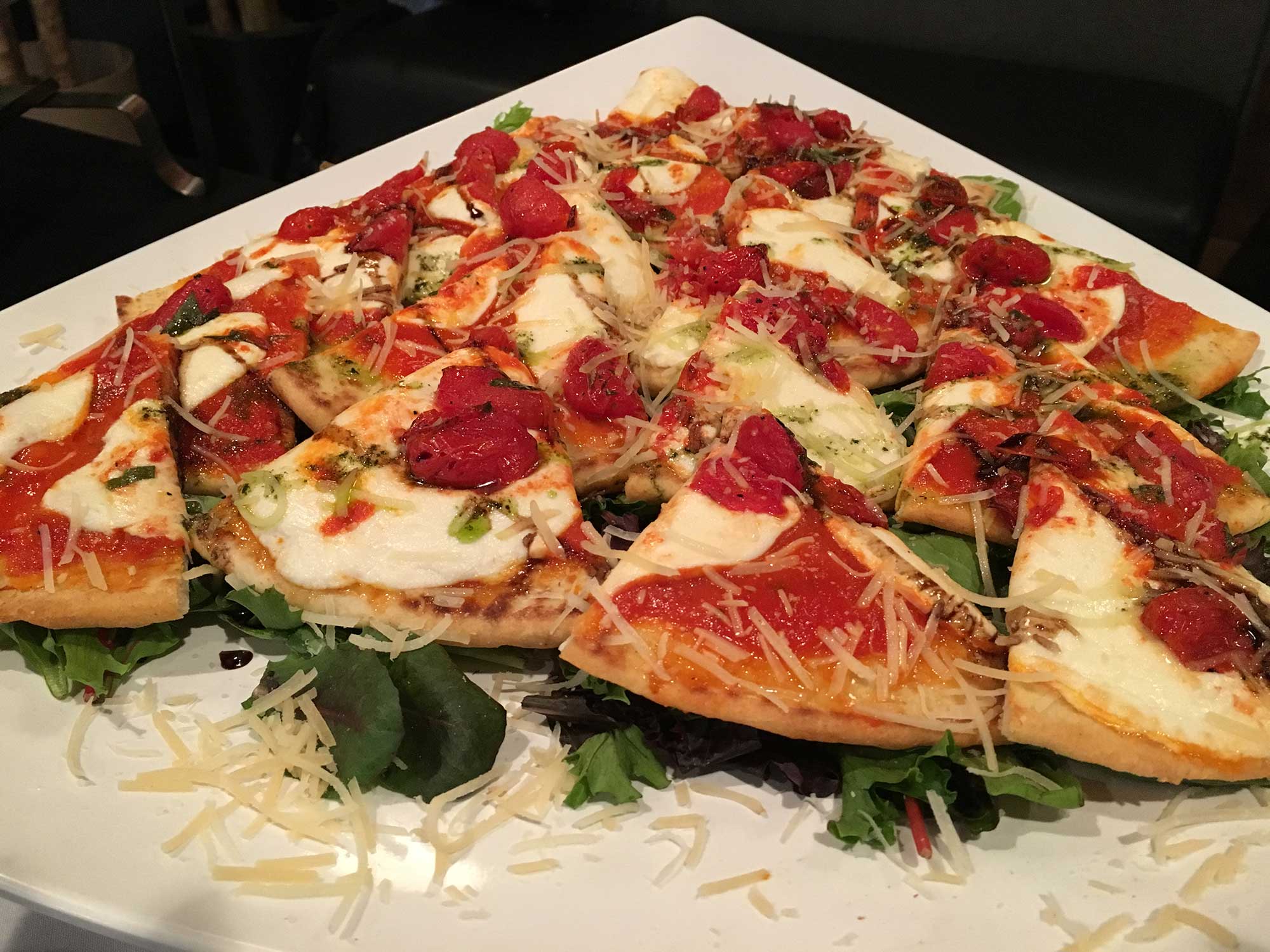 marinara, fresh mozzarella, basil oil, arugula, parmigiano-reggiano